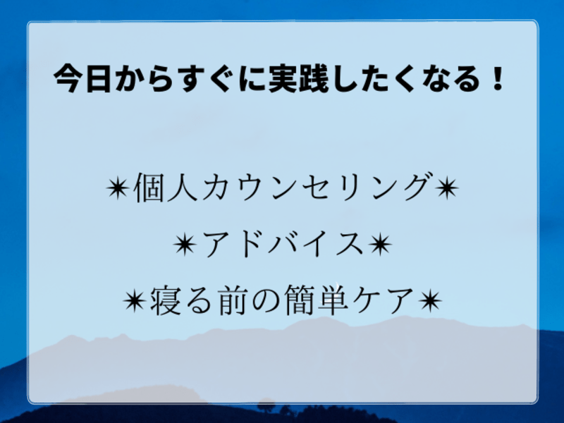 教えて頂いたことを取り入れながら、睡眠の質を上げられる様にやっていきたいと思います。