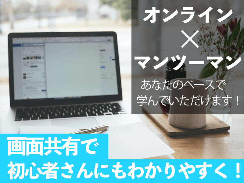 ※マンツーマンで、個人のペースに合わせて画面を共有しながら行うため、初心者の方でも安心してご参加頂けます!