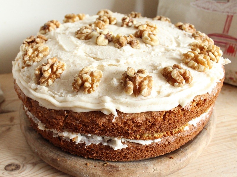 バナナと胡桃、様々な種類のチーズを使用したボリュームのあるチーズケーキを作りました。