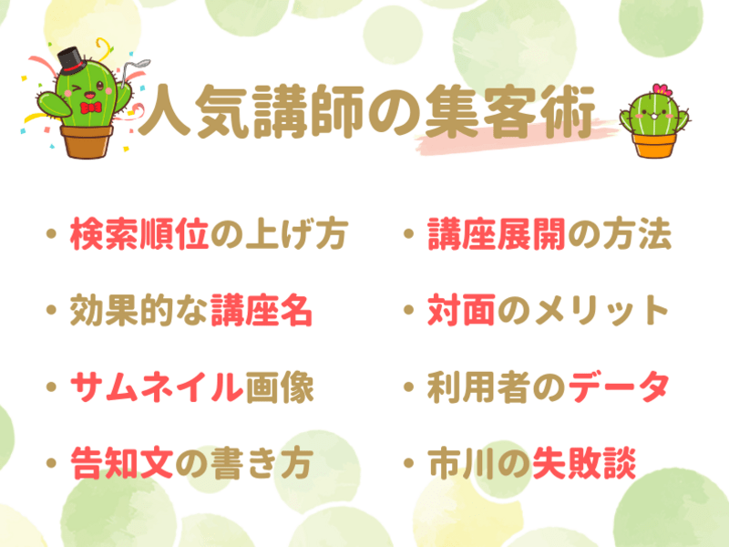 ストアカの講座作成・集客・話し方・不安解消など何でも学べます!皆さんのジャンル・状況・課題に合わせて講座内容をアレンジするので、実践的です!