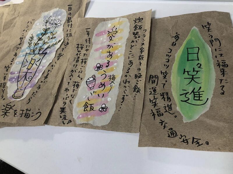 線、色、形から文字に進み、最後は物語のワンシーン作成へと、短時間で、思いもよらぬ多彩なアイデアが自分の脳内から引き出されたのに驚きました!