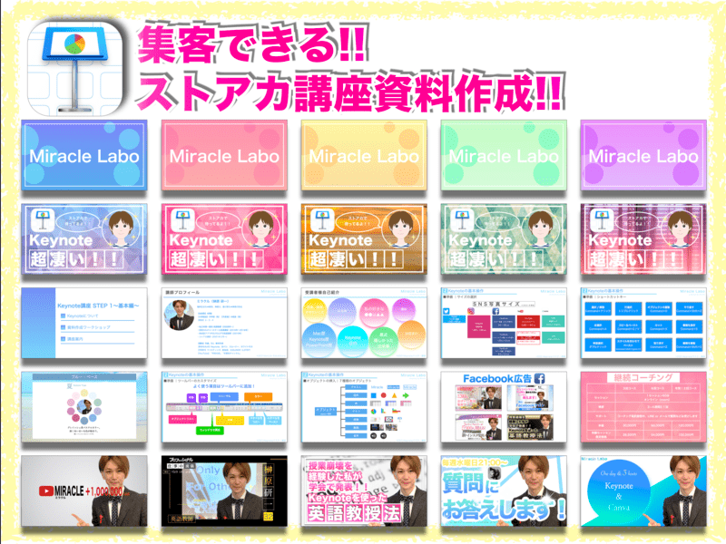 本やYouTubeだと、説明画面と自分の画面が違い、ちょっとしたところがわからなくなると先に進めないことがあります。keynote以前にMacBookの使い方がわからなくて、アタフタする私に、MacBookの便利機能まで説明して頂いて本当にありがたかったです。
