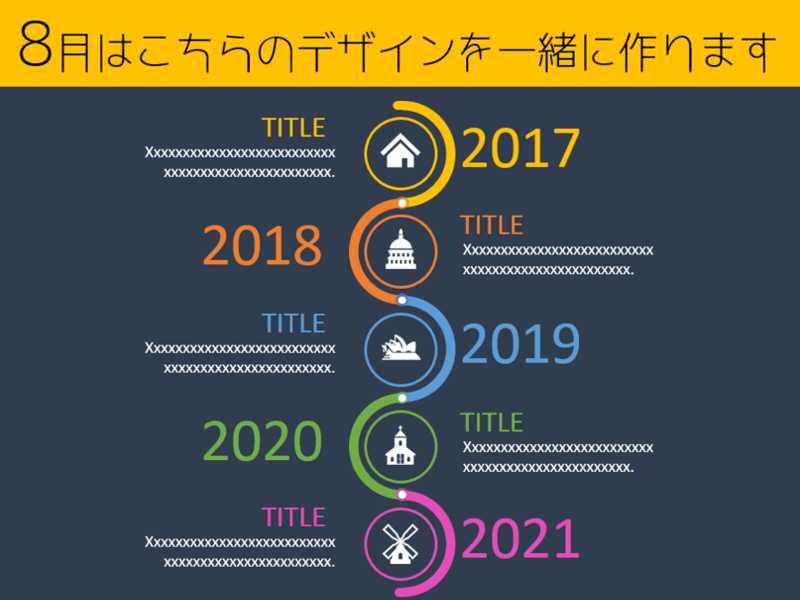今までおしゃれな画像に頼ってばっかりでしたが、パワーポイントに元から入ってる機能だけでこんなに可愛くておしゃれなのが作れるなら毎月受けたいです!