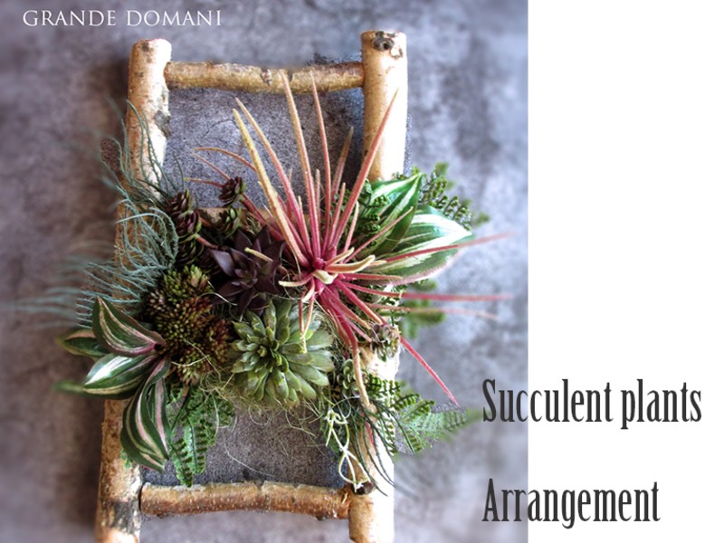 観葉植物や多肉植物は置いておくだけで癒されるもの。フェイクの多肉植物を白樺のハシゴにアレンジして他にないアレンジを作りませんか!