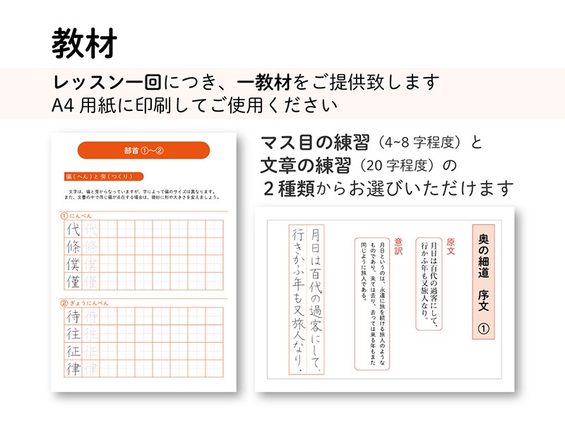 オンラインレッスンならではの工夫もされていて、お手本や自分の書いた文字をパソコンで拡大して見られるのがとても便利でした。紙のお手本では気づきにくい、参考にする部分や修正すべき箇所が一目で分かりやすく、効率的に学べます。