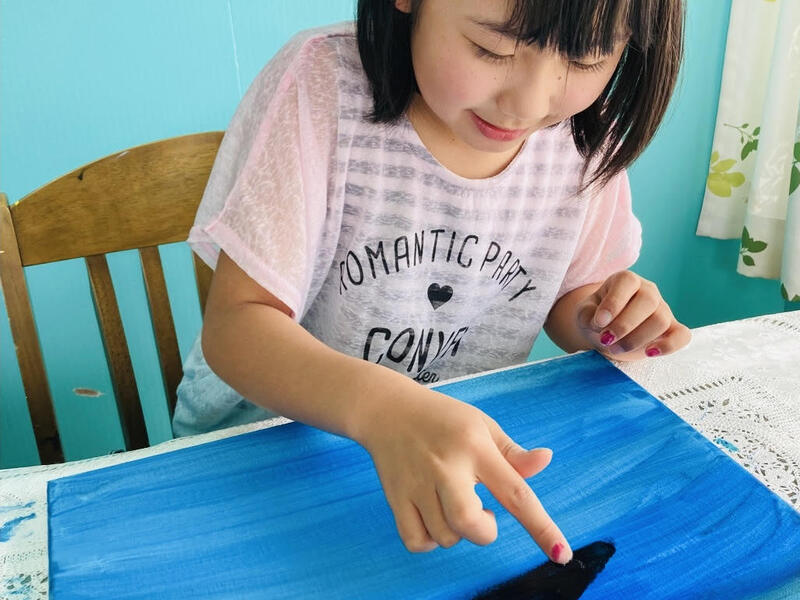 兄、妹で行かせていただきました。2人とも初めてのキャンパスに、それぞれ自由に描かせていただきました。指や筆を使い描いたのですが、先生は優しく見守ってくださり、子どもたちもますます絵が大好きになりました。次はいつあるのー??と毎回楽しみにしています。