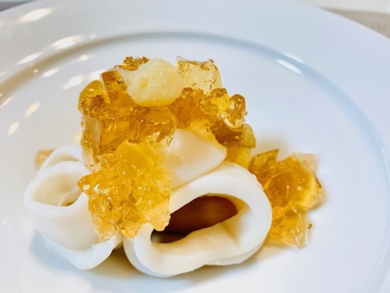 土佐酢ジュレでいただくなすとイカもさっぱりしていてとっても食べやすかったです。