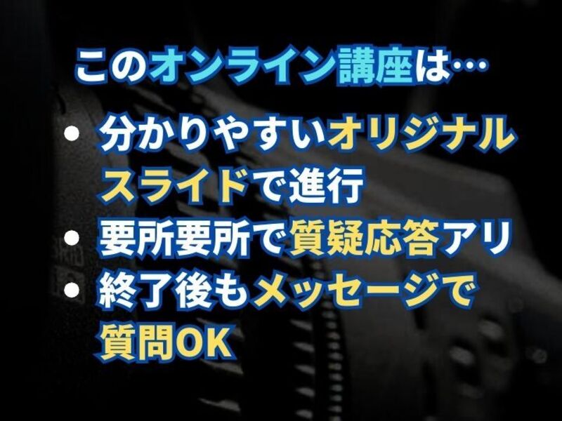 ※この講座では、カメラや編集アプリ等、制作機材の個別具体的な操作方法は一切お教えしておりません。ご注意いただきますようお願いいたします。