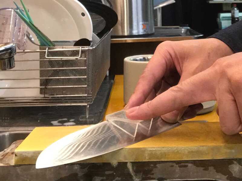 包丁の研ぎ方を丁寧に教えていただき、練習も広々としたスタジオでさせてもらい、実践的な練習と理論の両方を教えていただきました。包丁研ぐときにやりやすくなる専用の治具もいただけました。