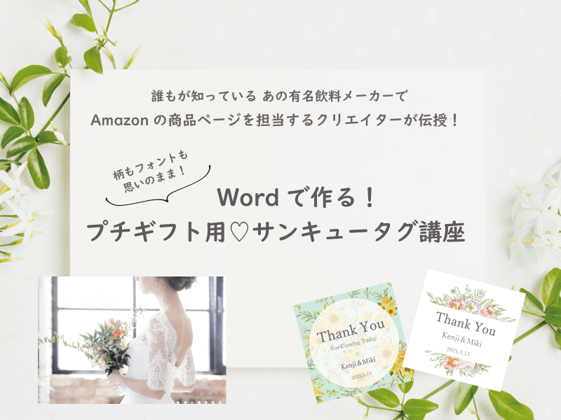 イラレ・フォトショ不要!身近にある「Word」だけで、フォントも柄も思いのままに「サンキュータグ」を作れるようになる講座です。