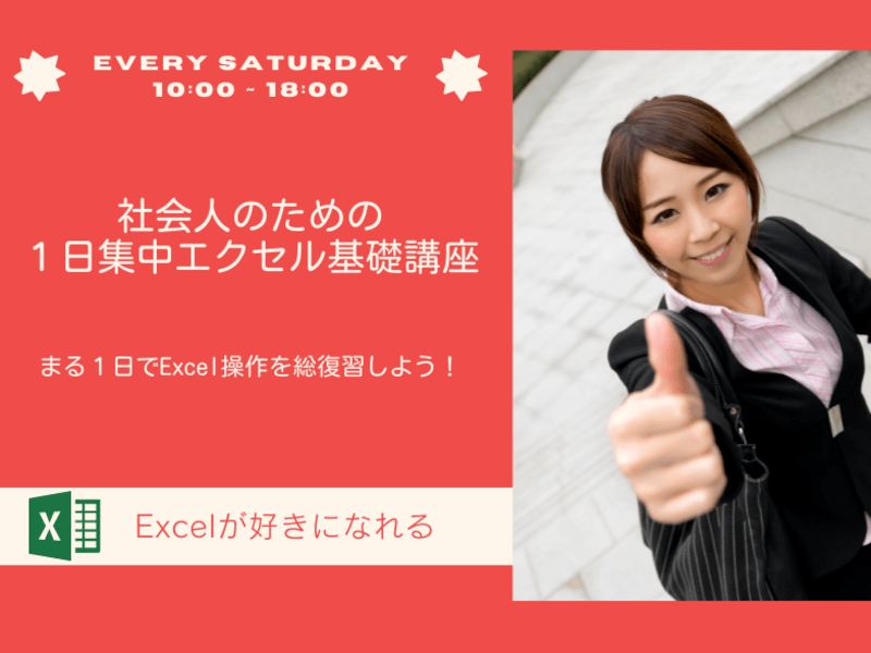 プロの講師が指導するまる1日完結型Excel講座です! 少人数制講座なので、皆さんのExcel操作を見ながらペースをあわせて指導いたします!