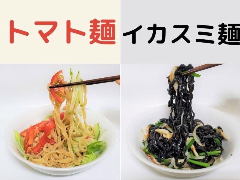 沖縄そばの麺をアレンジして、トマト麺、イカスミ麺を作ります。オンライン沖縄そば手打ち教室ステップ3受講した方に限ります。