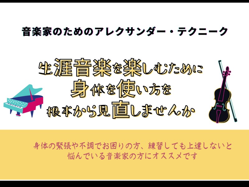◆アレクサンダーテクニーク教師の資格はアメリカで取得し、日本国内だけでなく、アメリカやヨーロッパでの指導経験あり。