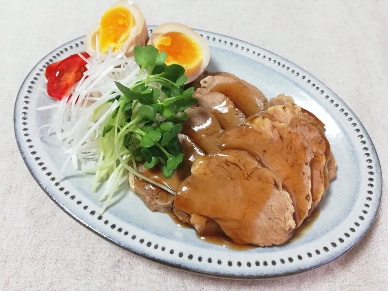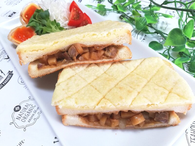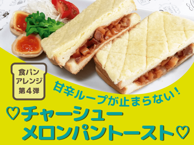 メロンパン風味のトーストと、甘辛チャーシュー餡。もちろんチャーシューそのものも作れるし、一緒に味付け卵まで完成。1度の受講でとってもお得な講座でした。