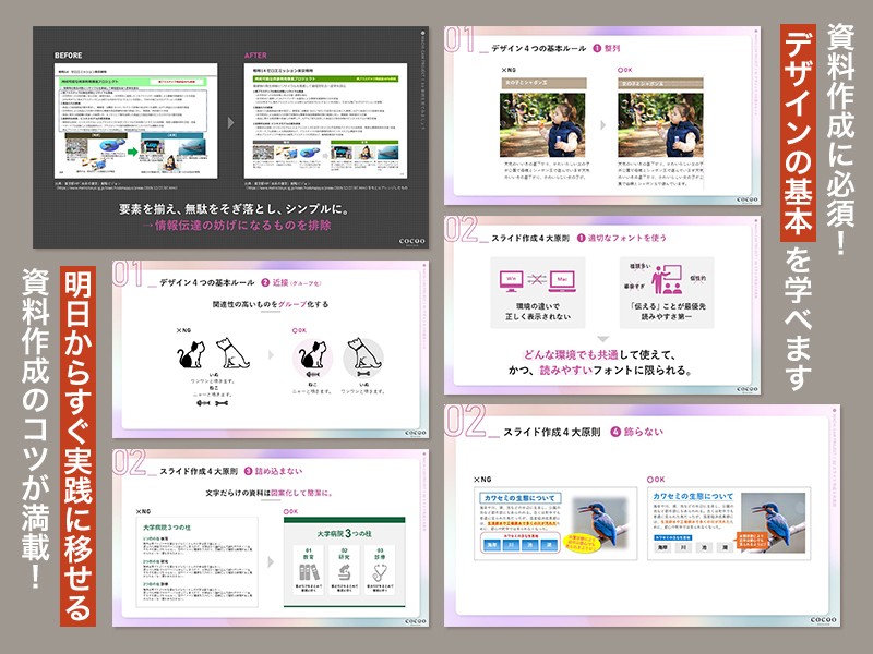 またその傍ら、ノンデザイナーに向けたデザイン講座/PPTデザイン講座の講師としても活動をしています。