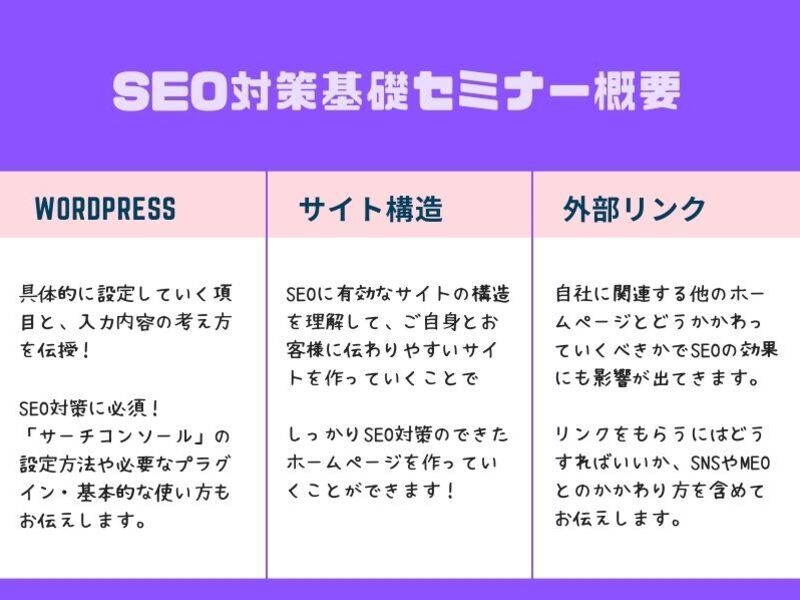 Wordpress(ワードプレス)サイトでのSEO対策の基本がわかる!ホームページから集客したい・アクセスアップしたい方の初めの一歩を応援◎