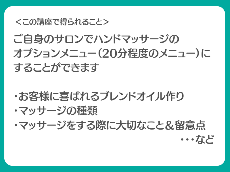 お客様との信頼関係アップ!そのままオプションメニューになるハンドマッサージ講座