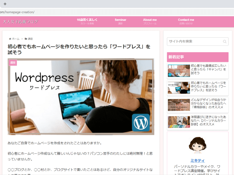 『Wordpress(ワードプレス)女性のためのホームページ入門🌸』(入門講座)