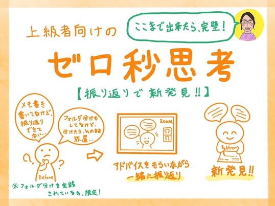 なかなか一人だと振り返ることをしないですが、こういう講座で振り返りする機会を持つと、改めてゼロ秒思考の意味づけを感じられます。