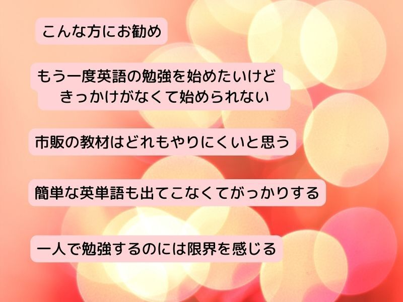 私自身も英語を教えているので、ブラッシュアップのために受講しました。初心者の為の講座でしたので、私には物足りないレベルではありましたが、これから英語を勉強しようと思っている方や、初めて勉強しようと思っている方には、やる気を起こさせてくれるのにとても良い講座だと思います。