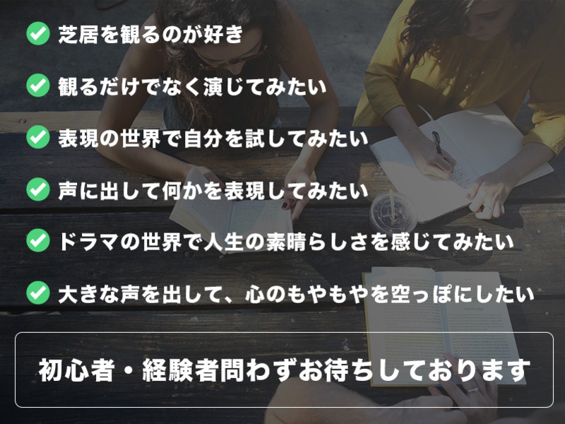 日常生活を通して戯曲を如何により面白く楽しめるかを演技で少し理解できたと思います。今後も定期的に受講したいと思います。