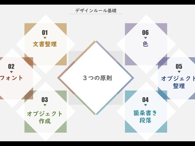 誰も教えてくれなかったパワーポイントのデザインルールを「3つの原則」と「6つのルール」を用いて解説、実践できるようにします。