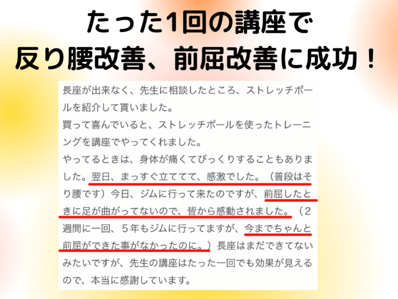 自分の課題も的確にご指導してくださって、受講して本当に良かったです。