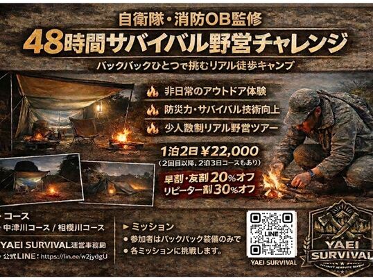 https://lin.ee/w2jydgU生きる力を野営で鍛える。