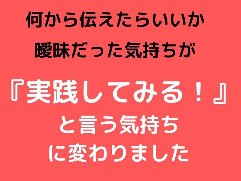 マイナスをなくし、加点していくような前提のお話と明日から使える相手のための言葉を学ぶことができました。