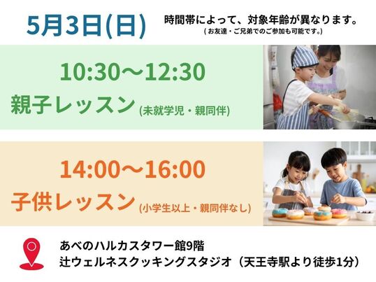 未就学児・小学生対象|親子参加OK!|親子向けワークショプ|こどもの日イベント|対面レッスン|あべのハルカス開催|焼きたてパン|親子パン教室