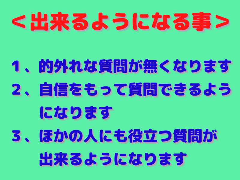 2、自信をもって質問が出来るようになります