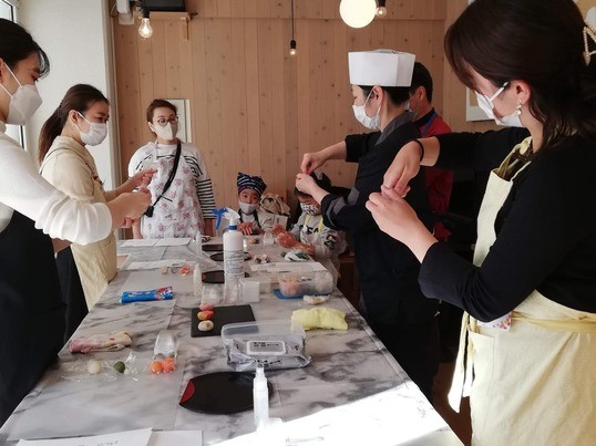 フランスの豆を使い餡を練り和菓子教室や実演販売、領事館からも会食やパーティー用の和菓子の依頼を受...