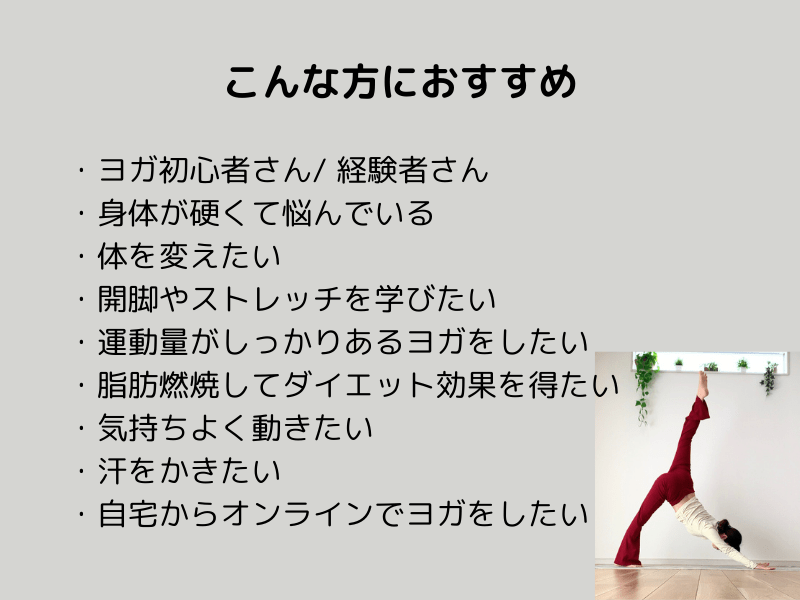 体を柔らかくするだけでなく、「痩せたい」「体を引き締めたい」という方はぜひ一緒にヨガを楽しみましょう!🙋♀️