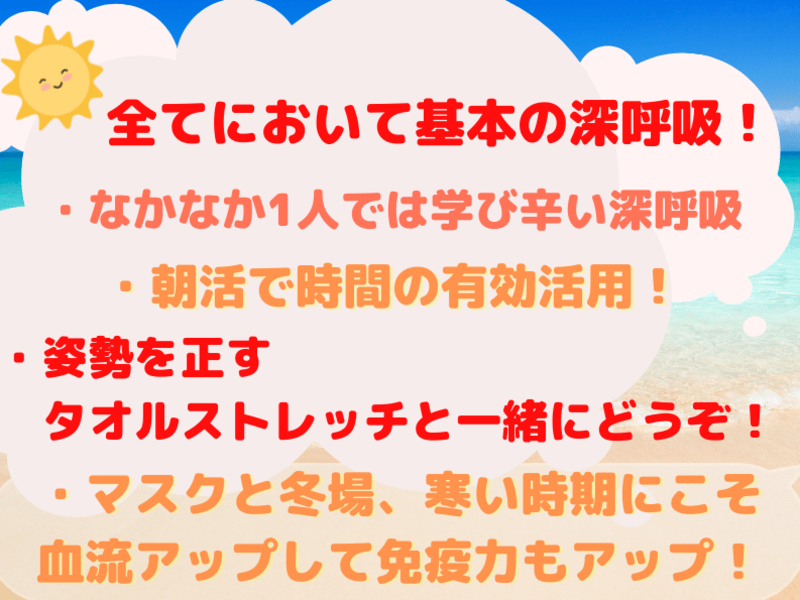 体の動きを伴っての呼吸法なので、効果ある、と思います!