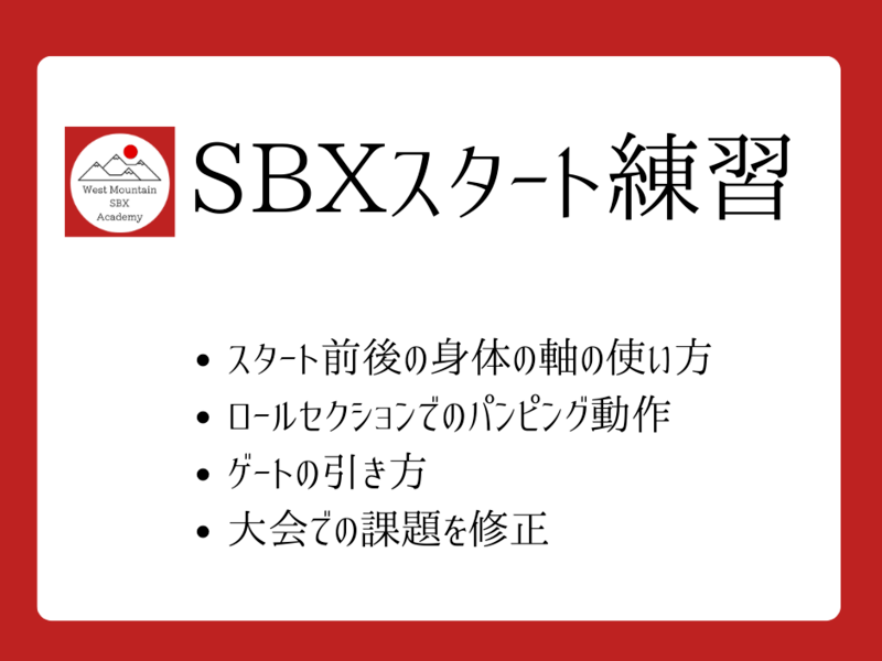 ・スノーボードクロス競技のレッスンです、他の種目には対応しておりません。