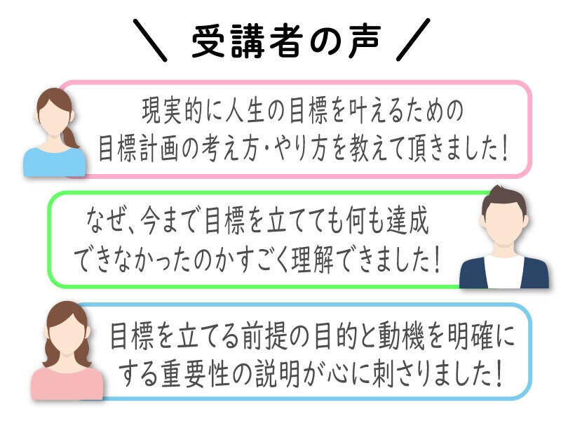 目標を立てること自体が苦手で、計画を立てても行動が起こせないため受講しました