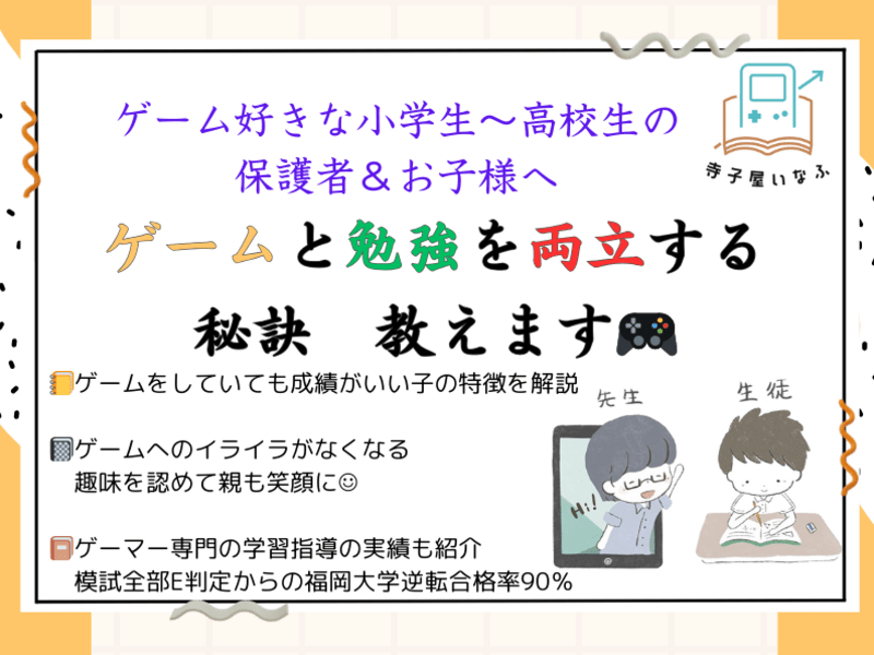 【寺子屋いなふ】塾長の藤田裕介です。「ゲームばかりで勉強しない」を「ゲームの才能を勉強に活かす」へ変える専門家です。