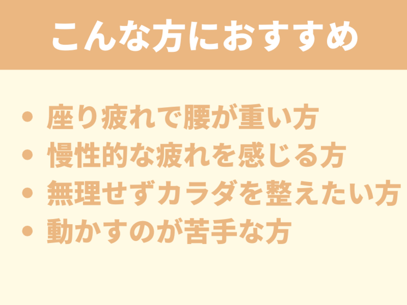 お話を聞いていただきながら進めていただけるので、腰痛に悩んでいる人にオススメです!