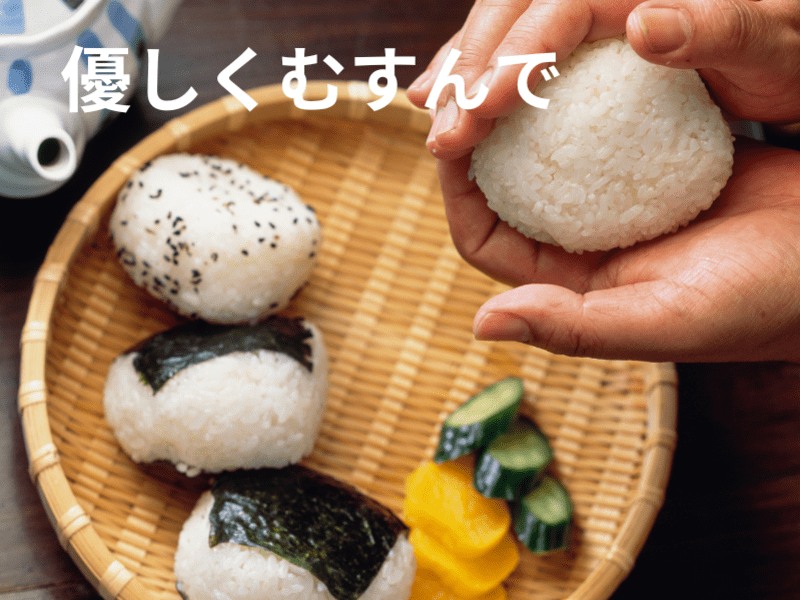 おむすびの作り方、ちょっとしたコツで、おむすび屋さんのようなやさしいおむすびを作ることができました。それ以外にも季節に合った一汁三菜を教えていただきました。