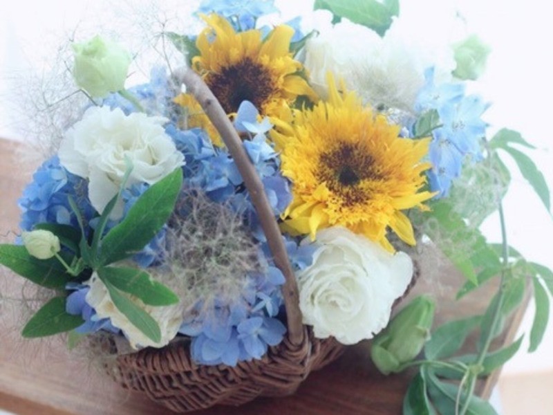 季節のお花を使ったバスケットアレンジメントをつくりましょう!初めて束ねる方でも大丈夫です!