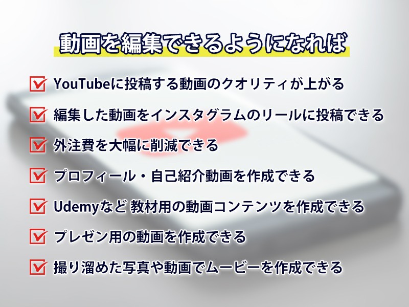 簡単な動画編集ができるようになりたいと思い受講しました。