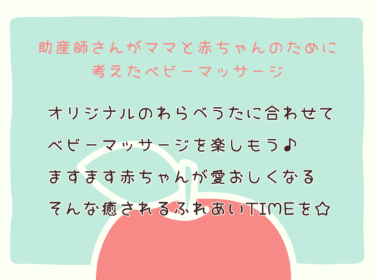 とても親切で楽しい時間でした!独学でやっていたベビーマッサージですが、細かい注意事項も聞けて勉強になりました!