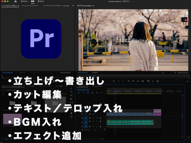 動画編集No.01シェアソフトPremier Proを使って実際にムービー編集をします。初心者・未経験者歓迎の講座です。