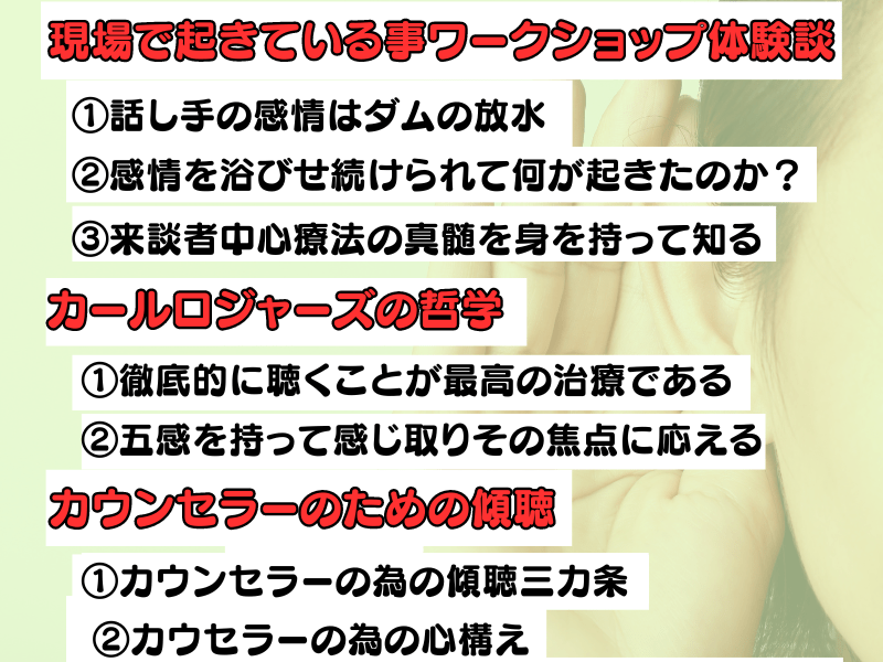 ですが、「傾聴の基盤になる考えを身に付けたい!」と考える方にとっては、大変有益な講座と思います。