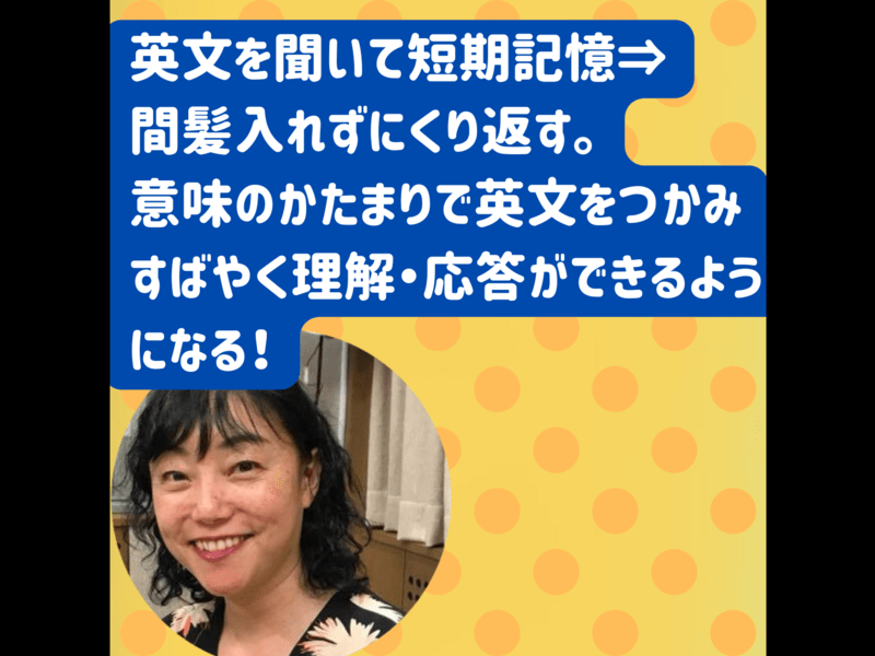 先日もご参加いただき、ありがとうございました! 質問と応答のセットを繰り返し何度も口に出していくことで、単語+単語だった英文がフレーズ+フレーズで言えるようになっていきます。簡単な例で言うと Thank you for helping me.のようにセットになっていれば「 toが必要? ingだっけ?」など悩まなくてもカタマリとしてそのまま口から出てきますね。やればやるだけラクに話せるようになっていきますよ(^^) See you soon!