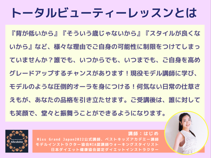 モデル流の歩き方や立ち振る舞いから、なりたい自分をつくるウォーキングをお伝えしています。