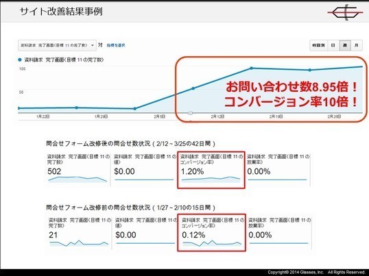 http://www.slideshare.net/ssuser501ecd/ss-65770611これは、ある旅行代理店様サイトの、問合せ数の推移です。