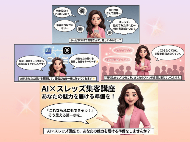 スレッズ投稿していると、誰の何のための投稿なのかよく分からなくなってきて、投稿内容もブレていたのですが、まみ先生の講座を受けることでターゲットと導線が明確になりました。