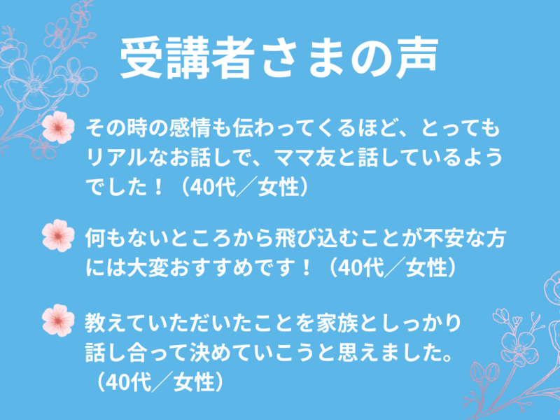 教えていただいたことを家族としっかり話し合って決めていこうと思えました。