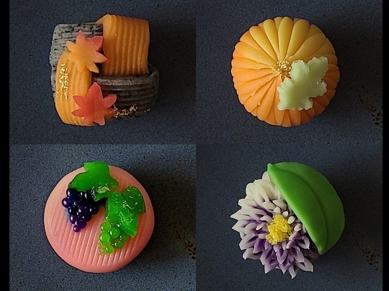 石畳、乱菊、ヘラ菊、葡萄をデザインした秋らしい練り切りを作りましょう(冷凍保存1か月可能)